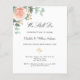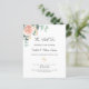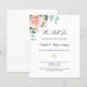 A chic white background. Decorated with a rose gold and blush pink floral, rose flower and green watercolored eucalyptus leaves, sprigs, greenery and a faux gold sprig. Personalise and add your names and the details. Black and green letters.