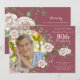 Shades of pink pretty rose floral wreath 80th photo birthday invitation. This pink rose flower wreath adult women's photo birthday invitation is a good choice for a birthday in any season but is particularly pretty for summer of fall / autumn because of the burgundy colour.