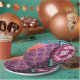 An array of colourful embroidered fabrics in a bohemian style print. Garnished with an embroidered rose. In rich, vibrant colours of purple, gold, turquoise, pink, orand and green.