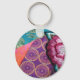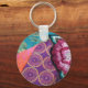 Array of embroidered fabric and embroidered rose print keychain. In a many colours of purple, green, teal, orange, pinks and gold. Rich bohemian print.