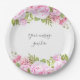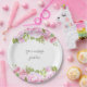 Rose garden add your message paper plate featuring pretty pink rose garlands framing your personalised message set in an elegant script text. Perfect for weddings, bridal showers, baby showers, baptisms, engagement parties, anniversary celebrations, graduations, birthday get-togethers and other special events throughout the year! Designed by Thisisnotme©