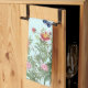 Red and pink roses attract colourful butterflies, against a sky-blue background on this beautiful kitchen towel.