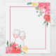 Blank template wine labels for blind tastings feature vibrantly coloured watercolor flowers with two clinking glasses of rosé. Hand write the numbers of the wines for the tasting and reveal the names and varietals at the end.