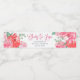 Bridal shower water bottle labels feature vibrantly coloured watercolor flowers with "cheers to love" in pink handwritten script lettering along with two custom text fields for the event name and date.