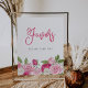 Designed to coordinate with our Rose Garden bridal shower collection, this favour table sign features pink handwritten script lettering with colourful blush, magenta and ivory flowers at the corners. "Favours; please take one" appears in pink and slate lettering. Choose professional printing or the Instant Download option to print locally or at home.