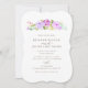 Floral wedding invitation featuring watercolor roses in purple.