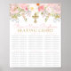 This 8 person, 6 table seating chart poster is perfect for a small gathering of 48 people. Adorned with pink roses and a gold cross, you can easily personalize all the text on the poster.