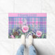 Rose Garden Pine Cones Pink Blue Plaid Doormat