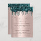 Rose Glitter Drips Teal Bridal Shower Sweet 16th Invitation