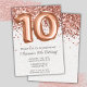 Rose Gold 10th Birthday Party Invitation and rose gold elegant modern 10th birthday party invitation for a 10 year old girl with modern script writing and fun foil balloons.