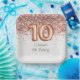 Rose gold 10th birthday party paper plates to decorate the birthday party tables white textured paper printed design.