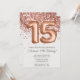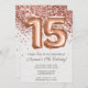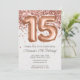 Rose Gold 15th Birthday Party Invitation and rose gold elegant modern 15th birthday party invitation for a 15 year old girl with modern script writing and fun foil balloons with printed texture paper background.