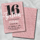 Introducing a chic and stylish "Sweet Sixteen" birthday party invitation, perfect for celebrating this special milestone with flair. The sleek design features a faux rose gold foil background with "Sweet 16" prominently displayed at the top in bold serif and script calligraphy. The text throughout the invitation combines modern and script fonts in black and white, creating a sophisticated contrast against the rose gold background. A clean white frame around the edge adds an extra touch of elegance. The back continues the rose gold theme, keeping the look cohesive. Ideal for a fabulous Sweet 16 birthday celebration, with customisable background colours, fonts, and frame to match your style. Rose Gold Sweet Sixteen 16th Birthday Party Invitation Elegant Modern Girly Pink Black White.