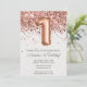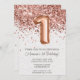 Rose Gold 1st Birthday Party Invitation and rose gold elegant modern 1st birthday party invitation for a 1 year old girl with modern script writing and fun foil balloons with printed texture paper background.