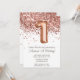 Rose Gold 1st Birthday Party Invitation and rose gold elegant modern 1st birthday party invitation for a 1 year old girl with modern script writing and fun foil balloons.