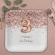 Rose gold 3rd birthday party paper plates to decorate the birthday party tables.
