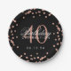 Rose Gold 40th Birthday Glitter Confetti Black Paper Plate