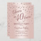 Elegant design with faux glitter rose gold and foil effect. Sparkly glitter diamonds confetti and stylish script font invite card. Glam blush pink and white. Cheers to 40 Years! Please message me if you need further customisation.