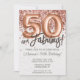 Rose Gold 50th Birthday Party Invitation and rose gold elegant modern 50 and fabulous with modern script writing and fun foil balloons with printed texture paper.