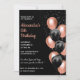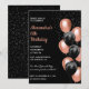 Rose gold 6th birthday invitation Balloon Black Pink glitter modern glam sparkle calligraphy typography feminine milestone classic elegant