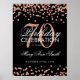 Rose Gold 70th Birthday Glitter Confetti Black Poster