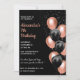 Rose gold 7th birthday invitation Balloon Black Pink glitter modern glam sparkle calligraphy typography feminine milestone classic elegant