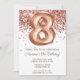 Rose Gold 8th Birthday Party Invitation and rose gold elegant modern 8th birthday party invitation for a 8 year old girl with modern script writing and fun foil balloons.