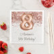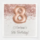 Rose gold 8th birthday party paper napkins to decorate the birthday party tables white textured paper printed design.
