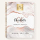 This notebook is perfect for the professional on the go. The rose gold and white agate marble background makes this notebook a beautiful addition to your desk, and you can use it to write down notes, jot down ideas, or keep track of important appointments. You can also personalise it with your business logo both on front and on the back cover. Add your name, monogram initials and full name.