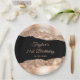 This elegant and glamourous birthday party plate features rose gold faux glitter glam tears on a black background. The text combines handwritten script and modern sans serif fonts for a classy and sophisticated look.