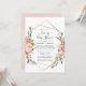 Blush pink and rose gold rose watercolor drive through bridal or baby shower invitation with a gold geometric frame.