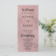 Adding a touch of grace and celebration, the words "Welcome," "Ceremony," and "Wedding Party" are delicately crafted in a pretty decorative script font. These ornate details infuse the program with a sense of sophistication, enhancing the overall charm of the design and evoking a feeling of enchantment.