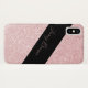 rose gold glitter background with a solid black stripe holding and elegant script monogram for your chic phone case. Check our store for more items from this collection