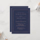 These modern and elegant rehearsal dinner invitations feature a rich, midnight blue background, with a faux rose gold border.