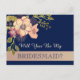 Rustic, elegant navy blue bridesmaid proposal card, with beautiful watercolor rose gold flowers.