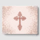Modern Girl Baptism guest book featuring single photo of the baby, blush pink background , rose gold cross and typography script ''Baptism'' in rose gold handwritten lettering. Personalize further with your celebration details in modern lettering.