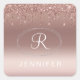 Rose Gold and Silver Glitter Monogram Square Sticker