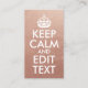 Rose Gold and White Keep Calm and Edit Text Business Card