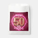 Celebrate a glamorous milestone with these stunning "Fifty & Fabulous" 50th birthday party favor bags! Featuring a vibrant, eye-catching design with 3D rose gold balloon numbers, a neon pink glowing circle, and elegant script typography set against a deep magenta background with festive confetti. These stylish paper treat bags are the perfect way to package thank-you gifts, candies, or memorable keepsakes for guests at a women's fiftieth birthday celebration. Easily change the name on the template to create the perfect cohesive look for your fabulous party table setting!