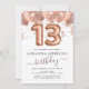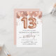 Rose Gold Balloons 13th Birthday Party Confetti Invitation