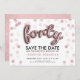 Elegant "40th Birthday Party Save The Date" design with Rose Gold Balloon Letters & Glitter confetti, and custom name and details text. Impress your family and friends with this stylish and glamourous design. Easy to use and easy to personalise. Order Today!