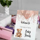 Rose gold balloons teddy bear baby shower welcome pedestal sign
