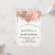 For an elegant Quinceañera, 15th birthday. A white background. Decorated with rose gold drips, paint dripping look and balloons. Personalise and add a name, age and party details. The name is written with a hand lettered style script