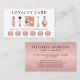 Elegant and chic beauty services and retail loyalty card featuring an array of rose gold illustrations of cosmetics with accents of rose gold faux glitter. Perfect for makeup artists, hair stylists, and beauty services and retail stores.