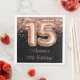 Rose gold black 15th birthday party paper napkins to decorate the birthday party tables.