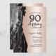 Black and rose gold agate 90th birthday party invitation. Elegant modern design featuring rock stone marble geode background, faux glitter rose gold and typography script font. Trendy invite card perfect for a stylish women's bday celebration. Printed Zazzle invitations or instant download digital printable template.
