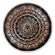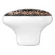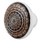 A concentric circle pattern of delicate mandala in trendy rose gold on black surrounding a five-pointed star. Please note that the design is digitally printed and the knob does not contain actual rose gold foil.