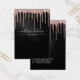 This girly and glamourous earring display card is the perfect way to stylise your packaging and add your own personal flair and personality. It depicts chic, pretty, unique, and luxurious faux printed sparkly rose gold glitter drips on top of a black brushed metallic background. The typography is an elegant cursive script with a modern serif font to match. On the back, it includes contact information that can be changed completely or personalised to your details. It's a professional, elegant, and stylish way to display your product with pride. (earring holes are printed markers only, puncturing must be completed by the customer)