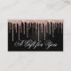 This girly and glamourous gift certificate business card is perfect for a stylish and trendy professional businesswoman. It features faux printed sparkly rose gold glitter drips on top of a black brushed metallic background. The typography is an elegant cursive script with a modern serif font to match. It's chic, pretty, unique, and luxurious; the perfect way to advertise your business and stylise your marketing and advertisement material for your customers.