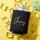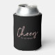 This custom can cooler design features a stylish brush script "Cheers" and "Birthday Party" in rose gold & black colour theme. You can customise the text. Matching invitations and party supplies are available at my shop BaraBomDesign.